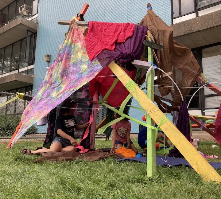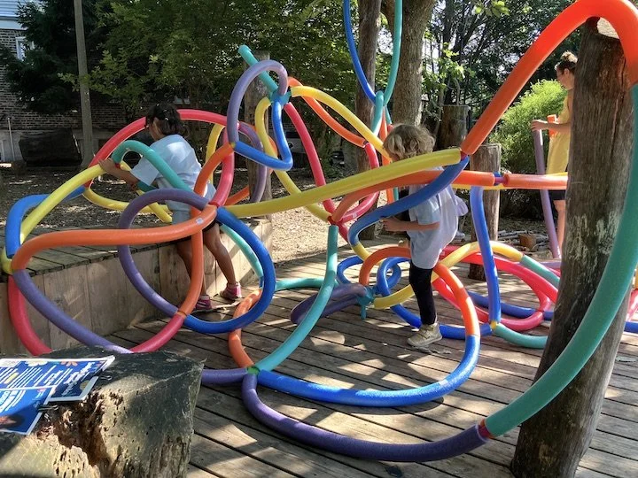 Squiggle Build es nuestra oferta más reciente en la serie Creative Build. Este taller para todas las edades invita a participantes a jugar, soñar y colaborar para transformar materiales familiares en escenarios imaginativos utilizando fideos de piscina. Juntxs podemos construir nuevos espacios e imaginar nuevas posibilidades.